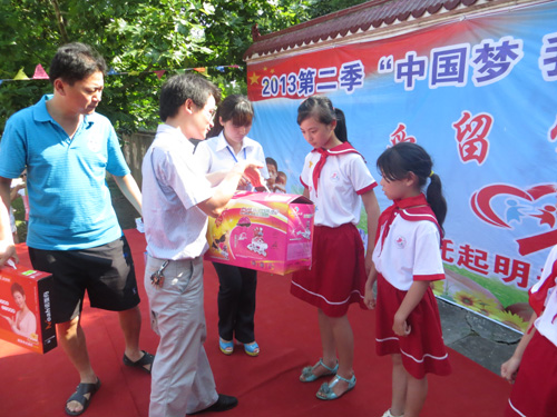 暢談會結束后,公司團支部又緊鑼密鼓的開始策劃助夢活動。6月24日在九江縣城門鄉(xiāng)中心小學舉辦了暢談活動續(xù)篇-“愛心助夢”儀式。青年志愿者和愛心企業(yè)家依次為留守兒童贈送愛心,當留守兒童收到期盼已久的禮物時,臉上洋溢出快樂的笑容。